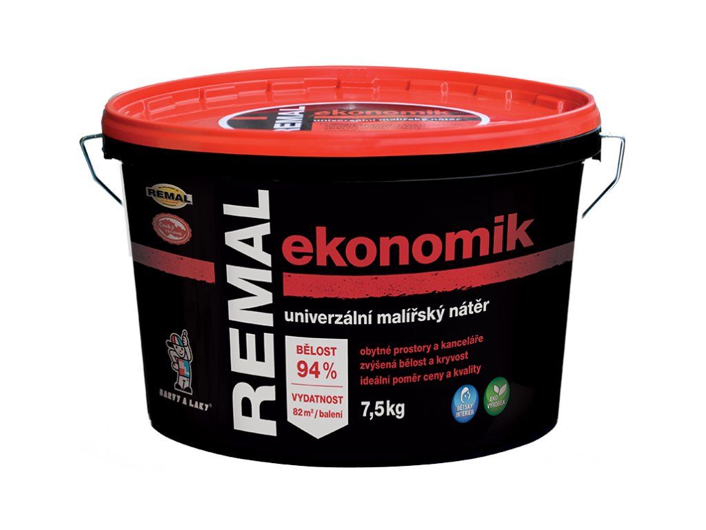 Remal ekonomik - interiérová farba REMAL EKONOMIK je maliarska farba s opticky vylepšenou bielosťou, krytím a vysokou paropriepustnosťou. Používa sa v interiéroch na maľovanie omietok, betónu, sadrokartónu, cetris dosiek, drevotriesky a sanačných omietok. Je vyrobená z prírodných vápencov, čo umožňuje použitie viacerých vrstiev. Vzhľadom na svoje zloženie umožňuje rýchlejšie schnutie. Farba vykazuje odolnosť proti oteru za mokra – merané podľa ČSN EN ISO 11998 – trieda 5 (klasifikácia podľa EN 13300). Príprava podkladu Nesúdržné, hrubé vrstvy starých náterov je potrebné oškrabať. Na vyrovnanie dier, trhlín a nerovných plôch použijeme REMAL STIERKU. Z trhlín väčších rozmerov je potrebné odstrániť nesúdržný materiál a na vyplnenie použiť akrylátový tmel. Po jeho zaschnutí použijeme na vyrovnanie REMAL STIERKU. Po zaschnutí a prebrúsení sa podklad ľahšie pretiera maliarskou farbou. Na problémové miesta (fľaky od zatopenia a pod.) je vhodné použiť izolačný REMAL FLEK-STOP. Príliš nasiakavé, prašné a nesúdržné podklady je potrebné najprv napenetrovať (spevniť) vhodnou penetráciou napr. REMAL, BARLET alebo SOICRAT. Teplota podkladu a prostredia pri natieraní nesmie klesnúť pod 5 °C. Odporúčaný náterový postup Farbu zrieďte max. 10 až 20 % vody a nanášajte v 2 vrstvách. Nanáša sa štetkou, valčekom alebo striekaním. Ďalšie vrstvy nanášajte najskôr po dokonalom zaschnutí. Tónovanie Tónovacími pastami REMAKOL V 3502, REMAL TEKUTÁ TÓNOVACIA FARBA. Vydatnost 11 m2/1 kg nariedenej farby na jeden náter Bezpečnostní list Katalogový listBuďte prvý, kto napíše príspevok k tejto položke.